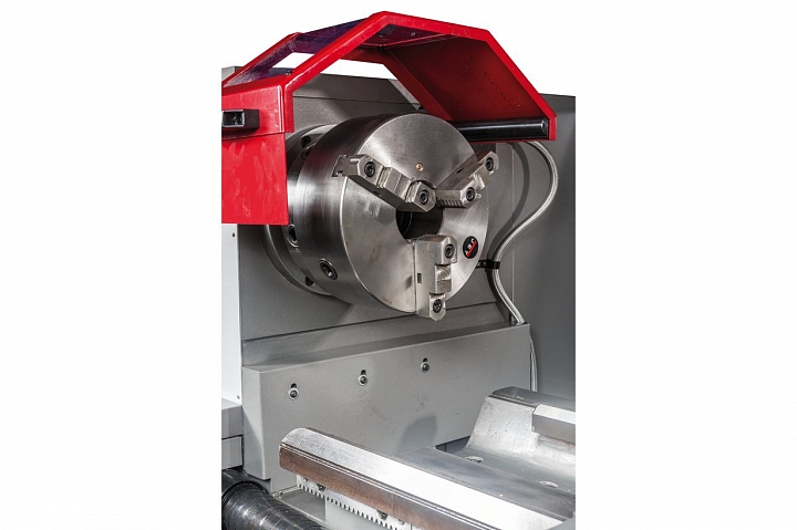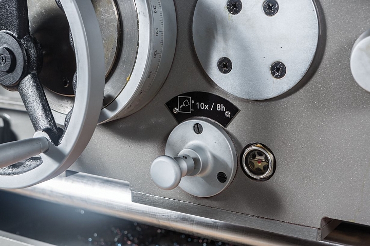 Предусмотрена низкая скорость 36 об/мин для нарезания резьбы плашкой. Коробка подач имеет 65 продольных и поперечных автоматических режимов, что позволяет нарезать все известные типы резьб с точностью и качеством: частота биений на шпинделе не превышает 9 микрон, а цена деления нониуса – 0,02 мм. На GH-2660 ZH DRO предусмотрены: толчковый режим пуска двигателя для облегчения переключения режимов скоростей, быстрое перемещение суппорта, педаль тормоза и экстренного отключения. Шестерни станка тщательно закаливаются и работают в масляной ванне. Это позволяет повысить ресурс изделия, снизить шум и решить проблему охлаждения. Как и все станки JET данного класса GH-2660 ZH DRO устанавливается на массивную станину из качественного чугуна, что позволяет снизить вибрации и эффективно отводить тепло при работе.