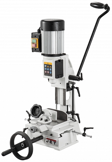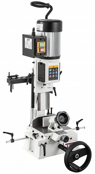 JBM-4 – долбежно пазовальный станок для подготовки деталей под прямую (90°) стыковку соединением шип-паз. Прочная и жесткая конструкция изготовлена из массивных чугунных отливок. Колонна зафиксирована под прямым углом к плоскости рабочего стола, ее положение не регулируется, это упрощает настройку и повышает точность станка.