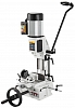 Подача сверла-резца производится длинной рукояткой, высоту которой можно настроить в зависимости от толщины заготовки и длины «долбяка». Вес подвижной части компенсирует газовый упор.